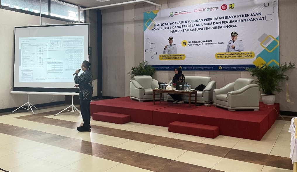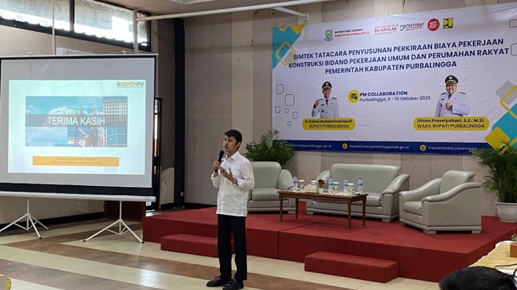 PURBALINGGA – Dalam rangka meningkatkan kapasitas Aparat Pengawasan Intern Pemerintah (APIP) dalam melaksanakan Probity Audit dan Reviu Harga Perkiraan Sendiri (HPS), serta memperkuat pengawasan terhadap pekerjaan konstruksi, Inspektorat Daerah Kabupaten Purbalingga menyelenggarakan Bimbingan Teknis (Bimtek) Tata Cara Penyusunan Perkiraan Biaya Pekerjaan Konstruksi Bidang Pekerjaan Umum dan Perumahan Rakyat (PUPR) pada Kamis–Jumat (09–10 Oktober 2025) bertempat di PM Collaboration Purbalingga.
